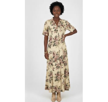 Embrace summer in style with this stunning vintage-inspired floral maxi dress by Casual Corner. Featuring a muted, buttery yellow base adorned with delicate, earthy botanical prints, this piece is the epitome of the Cottage core aesthetic. The button-down front, classic collar, and modest short sleeves offer a timeless silhouette that feels both grounded and romantic. As the warm sun begins to cast longer shadows and the scent of blooming flowers fills the air, it’s time to refresh our wardrobes with pieces that embody the essence of summer. Amongst the myriad of styles vying for our attention, one particular gem stands out: the maxi cottage core dress. This versatile and ethereal piece is perfect for those lazy afternoons spent in nature, garden parties, or simply soaking in the tranquil ambiance of summer. The Allure of Cottage Core Fashion is about encapsulating a romanticized rural lifestyle, focusing on comfort and an appreciation for nature. The aesthetic emphasizes soft, flowing fabrics, nostalgic motifs, and earthy tones, making it a perfect representation of the dreamy and laid-back summer vibes we all adore.